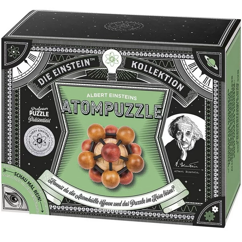 Can you split the atom? This polished wooden atom is beautifully crafted and splitting it to free the nucleus is satisfyingly challenging. The puzzle is gorgeously tactile and aesthetically pleasing, with a puzzle-within-a-puzzle construction. Would make a great gift for lovers of science and puzzlers alike.