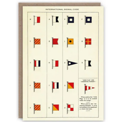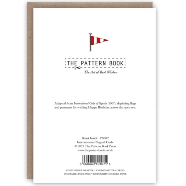 The perfect birhday card for sailors and maritime enthusiasts. Adapted from International Code of Signals (1907), depicting flags and pennants for wishing Happy Birthday across the open sea.