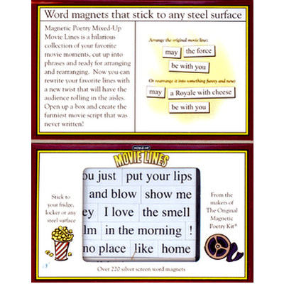 This could be the beginning of a beautiful new hobby... Great and infamous movie lines for you to mix and match.