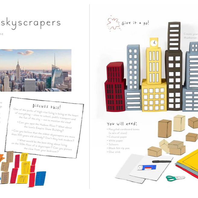 If you know a small person who would enjoy building a light-up papier mache igloo, or a spaghetti and marshmallow replica of Gaudi's Sagrada Familia in Barcelona, or even a miniature paper plate Sydney Opera House, then this book will feed their creativity. Spanning the breadth of architectural history from ancient through to modern and contemporary, Mini Architects provides 20 diverse, fun and accessible mini craft architecture projects for children and parents to make together. And if a school peremptorily requires a straw model of the Eiffel Tower or a cardboard medieval fortress, fear not! - inspiration (and salvation) can be found here!
