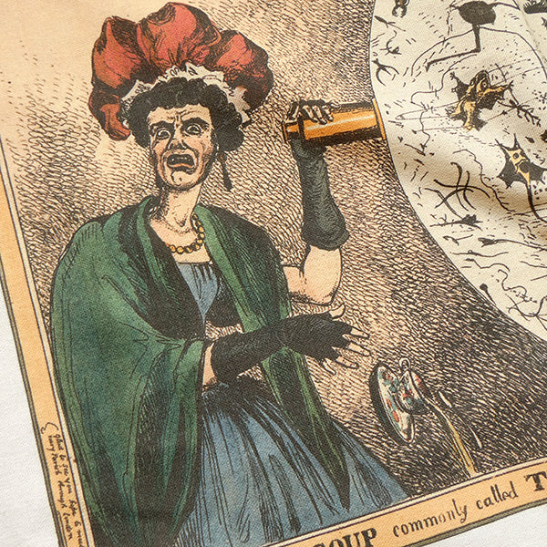 "MONSTER SOUP Commonly Called THAMES WATER, Being a Correct Representation of that Precious Stuff Doled Out To Us!!!" This 1828 cartoon by William Heath marks the report of the Commission on the London Water Supply in that year. It shows a respectable lady dropping her tea in horror at a micropscopic view of the menagerie living in a drop of filthy Thames water - street entertainers of the time would actually offer these views.