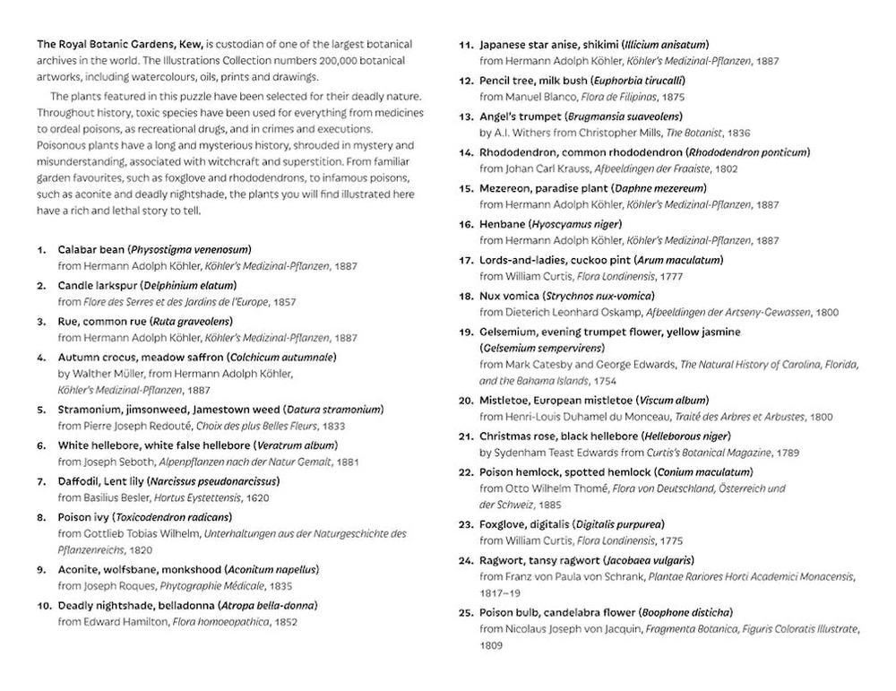 This stunning botanical jigsaw is illustrated with all manner of beautiful but deadly plants and flowers - from well known flowerbed favourites such as foxgloves and rhodedendrons, to infamous lethal florals like belladonna and aconite. A pull-out poster is included, which identifies the featured poisonous plants. Would make a great gift for nature lovers and gardeners - and anyone who wants to brush up on their poisons!