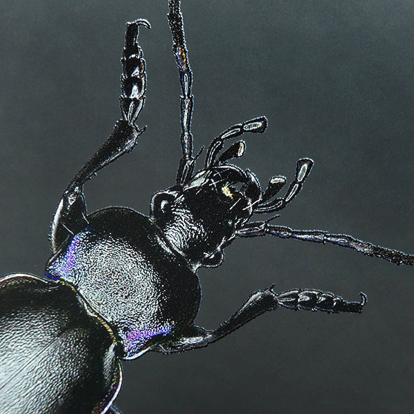 Carabus violaceus: a "fast-running nocturnal predator" as the books always seem to say, this large beetle will be a familiar sight to any child in Eurasia who has buried a jar up to its neck and then examined it the next morning. With it's black satin texture, subtle violet markings and elegant, violin-like body, it is one of the more handsome inhabitants of our gardens.